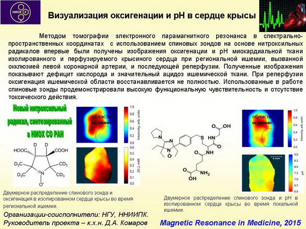 Functional electron paramagnetic resonance imaging of ischemic rat heart: Monitoring of tissue oxygenation and pH/ A.A. Gorodetsky, I.A. Kirilyuk, V.V. Khramtsov, D.A. Komarov// Magnetic Resonance in Medicine, Early View (Online Version of Record published before inclusion in an issue) doi:10.1002/mrm.25867