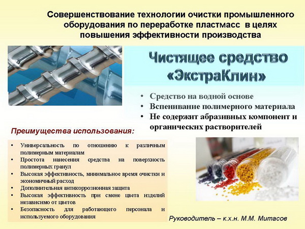 6. Совершенствование технологии очистки промышленного оборудования по переработке пластмасс в целях повышения эффективности производства